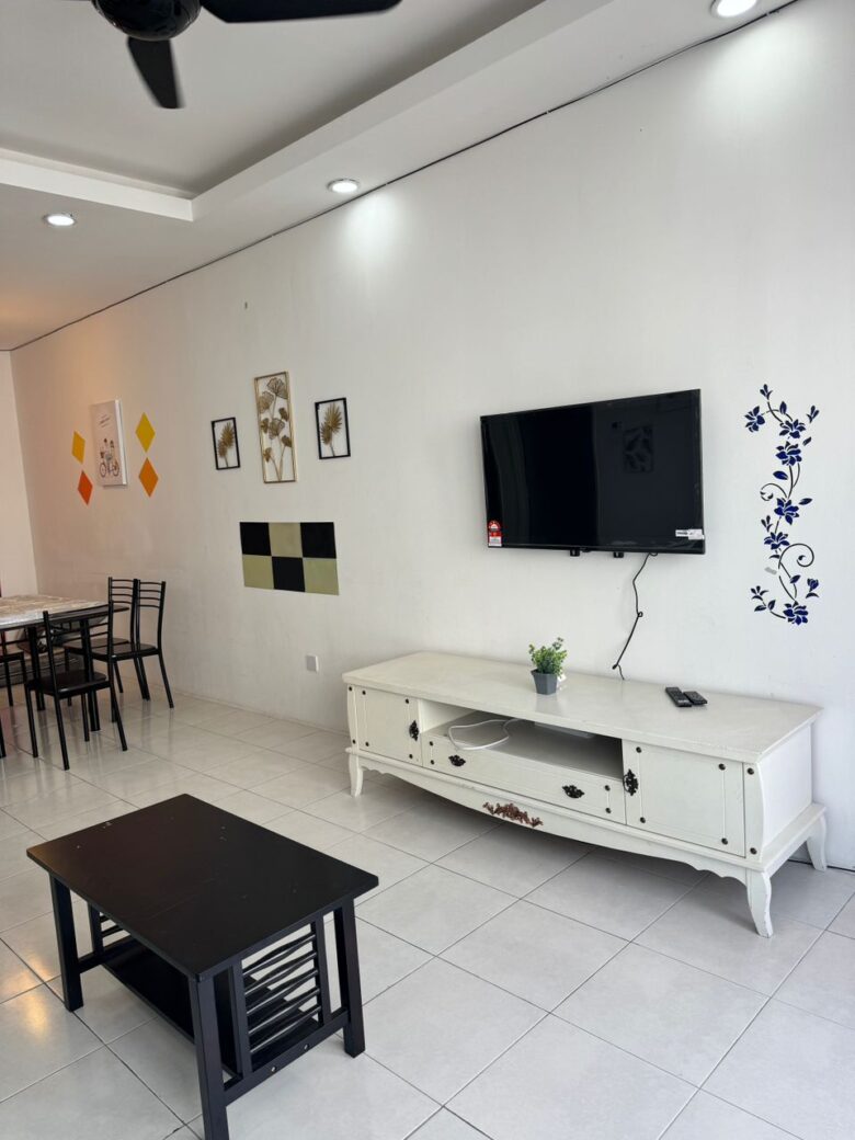 AYAAN DELUXE HOMESTAY FREE WiFi in Cameron Highlands offers a spacious apartment with three bedrooms and two bathrooms. The living room features a sofa and TV, ensuring comfort for all guests.