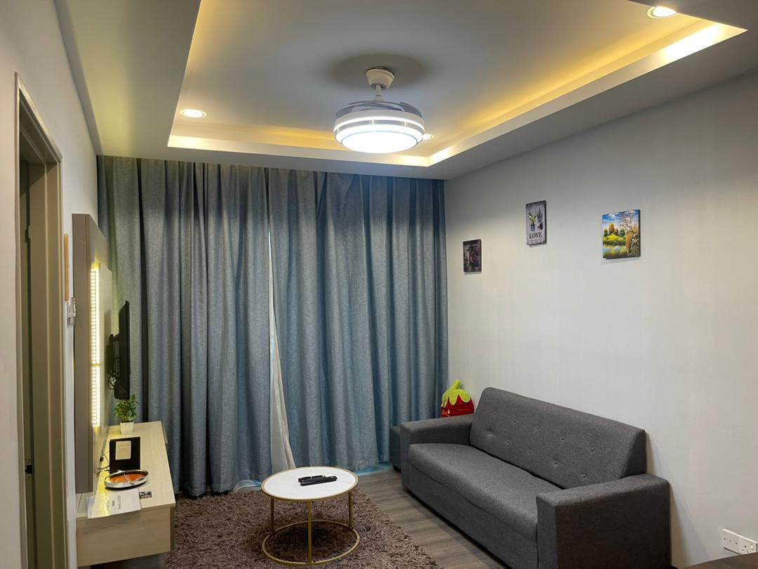 AYAAN DELUXE HOMESTAY FREE WiFi in Cameron Highlands offers a spacious apartment with three bedrooms and two bathrooms. The living room features a sofa and TV, ensuring comfort for all guests.